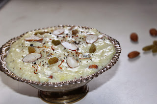 Wish you all a very Happy Dushera! Dushera being a celebration of the triumph of Good over evil, it is celebrated across India with a lot of enthusiasm. The day before Dushera is the ninth day of Navaratri. Traditionally in my home, we have special pooja and we worship Goddess Durga with lot of love and faith. That day we make couple of traditional dishes to offer Goddess Durga as prasad. And one of them is Kheer or Rice Pudding. There are many different traditional ways to make Rice Pudding. I am sharing my version for making Rice Pudding, that I find to be quick and instant.